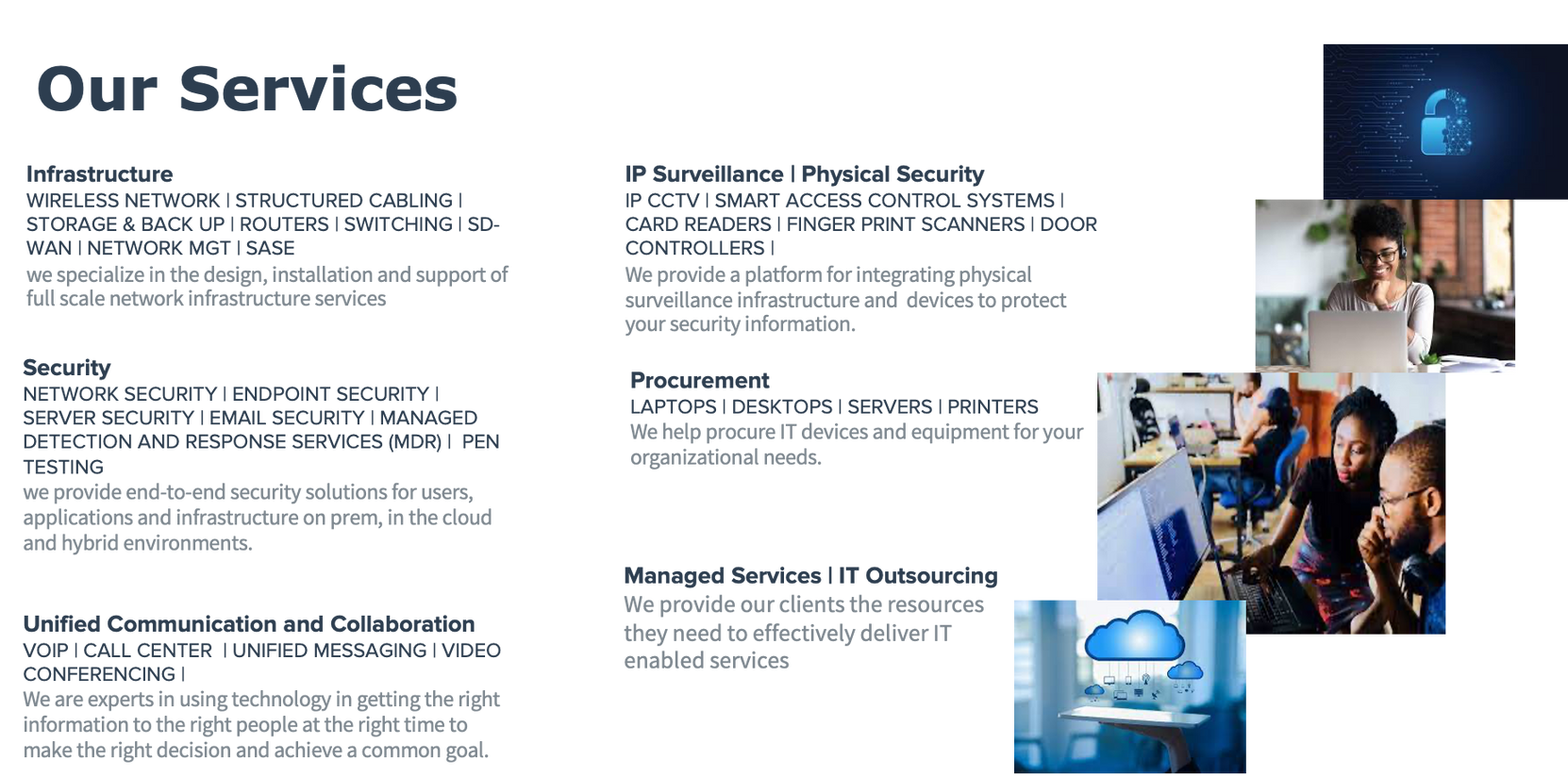 We specialize in designing, implementing, and supporting full-scale Network Infrastructure and Cybersecurity services.